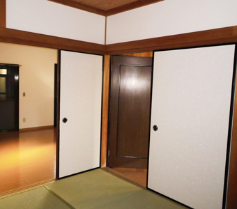 | リフォーム箇所 | 聚楽壁クロス下地やり替え クロス張り替え 畳替え、ふすま貼り替え |