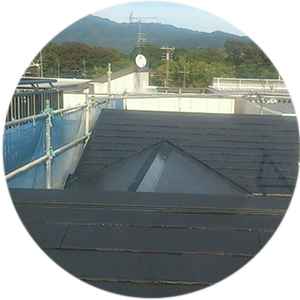 『スレート屋根』の場合、通常約10年程で、表面に汚れや色あせが出てきます。状況によっては、コケが生えたり、“ヒビ”が生じる場合もあります。そこで屋根の塗装をし直して、表面の耐久性を上げます。